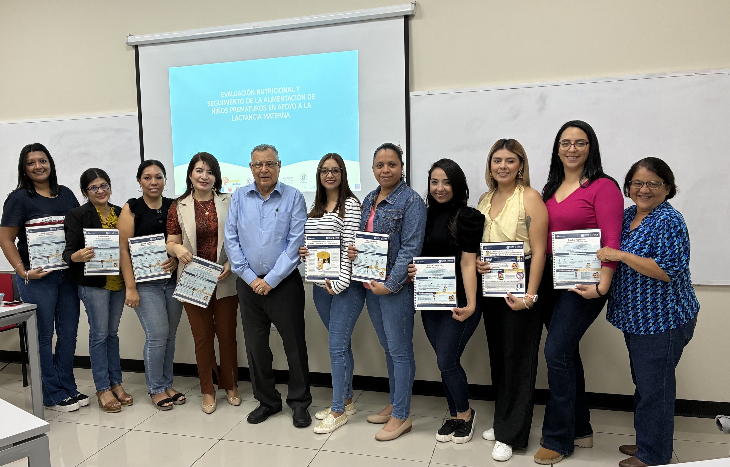 San Salvador, El Salvador, 26 de agosto de 2025. Durante el mes de agosto, con motivo de celebrar el mes de la lactancia materna, la Región Metropolitana del Ministerio de Salud, con apoyo del INCAP desarrolló una jornada de capacitación para nutricionistas. El objetivo de la capacitación fue fortalecer los conocimientos de las nutricionistas de la Región sobre evaluación nutricional y seguimiento de la alimentación de niños prematuros en apoyo a la lactancia materna. Participaron diez nutricionistas procedentes de las unidades de salud y Sistema Básico de Salud (SIBASI) de la Región de Salud Metropolitana. El tema central desarrollado fue: “Evaluación nutricional y seguimiento de la alimentación de niños prematuros en apoyo a la Lactancia Materna”. En la jornada se incluyeron los siguientes sub-temas: infografías del INCAP sobre temas claves para seguimiento de la promoción y protección de la lactancia materna, guía de práctica clínica basada en evidencia sobre intervenciones de prevención, promoción, cuidado de las complicaciones y apoyo a las familias de los recién nacidos prematuros y con bajo peso al nacer, y lineamientos para la evaluación nutricional del prematuro. Se desarrollaron ejercicios prácticos de evaluación nutricional a prematuros utilizando casos reales de niños atendidos en unidades de salud. Al finalizar, los participantes dieron sus aportes para evaluar la actividad y se les hizo entrega del compilado de infografías de INCAP sobre promoción y protección de la lactancia materna.